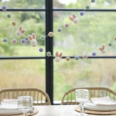 Hang this adorable felt Easter bunny bunting with pom poms around your room - Hop to it! Each Easter garland includes colourful felt balls and sweet little bunny heads., Manufacturer: Ginger Ray