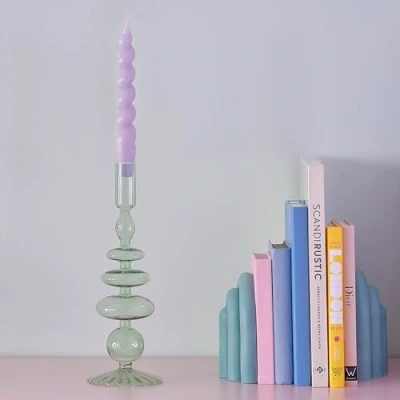 Brighten up your table or home decor with this fun green glass dinner candle holder. Each green glass candle holder fits 2.2cm candles., Manufacturer: Ginger Ray