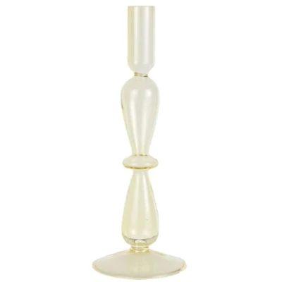 Brighten up your table or home decor with this fun yellow glass dinner candle holder. Each yellow glass candle holder fits 2.2cm candles., Manufacturer: Ginger Ray