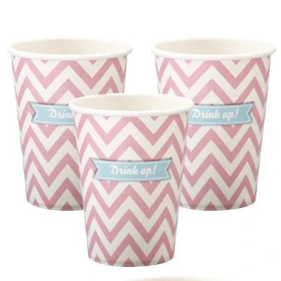 Pack of 8 Pink Chevron Paper Cups Each cup holds 9 oz. Other matching products in Ginger Ray Chevron Divine Range, Manufacturer: Ginger Ray