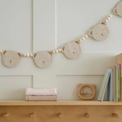Ginger Ray Wooden Teddy Bear and Beads Bunting Baby Shower Hanging Garland Decoration, 1.5m