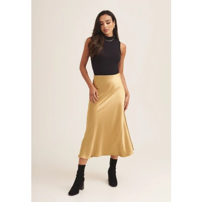 GINI London BIAS CUT MIDI Aline skirt, Women's, Size: 16, Sandy gold