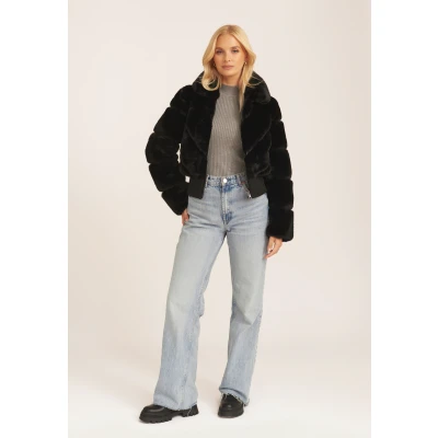 Gini London Womens Faux Fur Zip Front Short Jacket Black Size Medium/Large