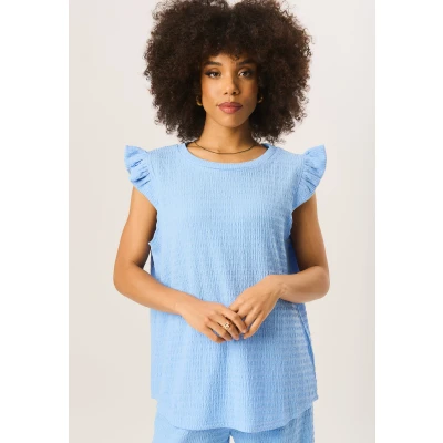 Gini London Womens Frill Sleeves Textured Oversized Top Blue Size Small/Medium