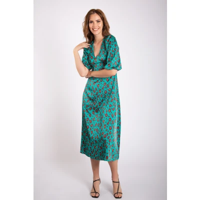 Gini London Womens Green Animal Print V Neck Shift Midi Dress Size 8 UK