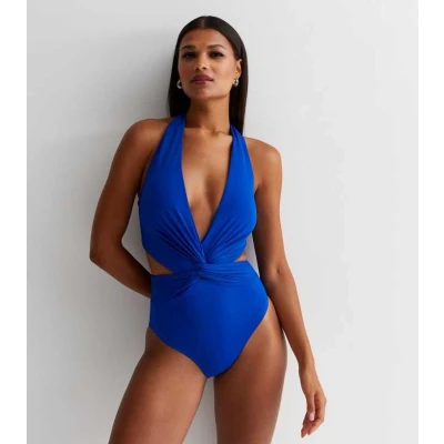 Gini London Womens Halter Twisted Cut Out Swimsuit Blue Size 12 UK