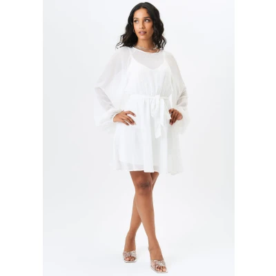 Gini London Womens Long Sleeve Chiffon Foil Mini Dress Ivory Size Small/Medium