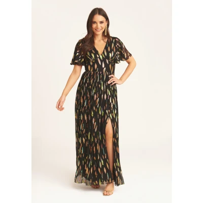 Gini London Womens Multi Jacquard Angel Sleeves Maxi Dress Black Size 14 UK