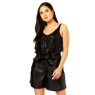 Gini London Womens Sequin V Neck Cami Top Black Size L/XL