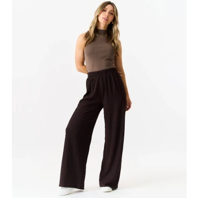 Gini London Womens Textured Elastic Waist Pull On Trousers Chocolate Size Medium/Large