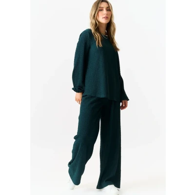 Gini London Womens Textured Long Sleeves Oversized Top Green Size Small/Medium
