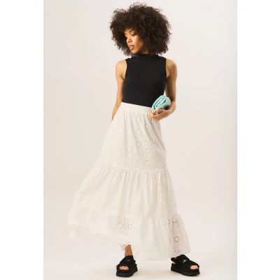 ZalandoGINI London Tiered Embroidered Maxi skirt white Sale at Zalando UK | Outer fabric material: 100% cotton | Sale order at Zalando UK! Size: 14. Color: White.
