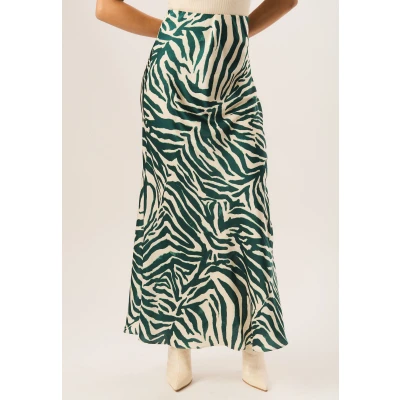 Gini London Womens Zebra Bias Maxi Skirt Green Size 8 UK