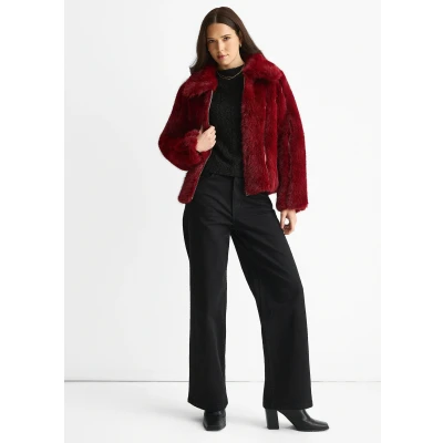 Gini London Womens Zip Front Faux Fur Short Jacket Burgundy Size L/XL