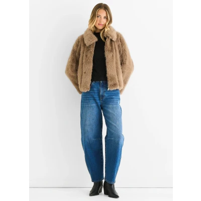 Gini London Womens Zip Front Faux Fur Short Jacket Stone Size L/XL