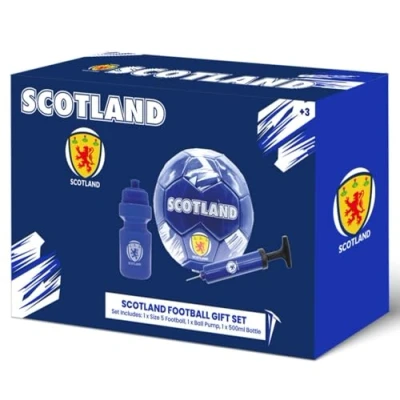 COMPLETE 3 PIECE SET: Each box includes a size 5 football, a colour matched 500ml water bottle, and a handy hand pump to keep your ball ready for action, the perfect all-in-one gift for birthdays, Christmas, or match #day excitement. QUALITY BUILD & DESIGN: Durable synthetic rubber ball construction ensures lasting performance, while the water bottle and pump feature the same bold national colours and logos to create an authentic football experience. PERFECT FAN GIFT IDEA: Designed for football lovers young and old, this stylish country themed set is ideal for supporters, collectors, or families looking for a unique gift to celebrate their favourite team and national pride. SHOW YOUR NATIONAL PRIDE: Celebrate your country’s spirit with this themed football gift set available as England, Ireland, and Scotland designs, perfect for home, park, or garden play and a must-have for every passionate football fan. OFFICIAL SIZE & IDEAL PACKAGING: Each set comes in a full-colour display box, making it a standout football gift. The size 5 ball offers real match feel for recreational play, while the packaging is perfect for gifting and easy storage.
