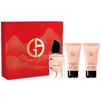 #html-body [data-pb-style=X7ROEYN]{justify-content:flex-start;display:flex;flex-direction:column;background-position:left top;background-size:cover;background-repeat:no-repeat;background-attachment:scroll}This holiday season, embrace the magic of giving with an exclusive Armani beauty gift set, a perfect way to delight someone special. Each set is thoughtfully designed to captivate from the moment it’s opened, revealing iconic fragrances and luxurious treats. The signature Sì fragrance takes centre stage, inviting you to experience its sophisticated blend of elegance and sensuality. Sì is a timeless scent that balances intensity and softness, creating a captivating olfactory journey. Its distinctive composition features cassis nectar, modern chypre, and light musky wood, delivering a rich and layered experience. The fragrance lingers beautifully on the skin, leaving an unforgettable impression. Housed in a refined glass bottle, adorned with the golden Sì logo, this precious design is both refillable and recyclable, reflecting Armani’s commitment to sustainability and mindful luxury. The set includes a 50ml bottle of Sì Eau de Parfum, along with matching body lotion and shower gel, offering a complete fragrance ritual. Presented in a stunning red box, crafted from premium, plastic-free materials and adorned with gold detailing, this gift set is as elegant as its contents. Designed to be cherished and reused, it is a lasting reminder of luxury and thoughtful gifting.