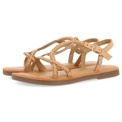 Nude leather sandals embellished with rhinestones and braids Leather lining The insole is padded Sustainably tanned leather footbed
