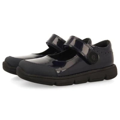 Navy blue school ballerinas in sustainably tanned patent leather with adjustable closures Breathable lining, flexible sole, and highly cushioned and breathable leather insole Very lightweight, non-slip and flexible outsole Breathable, absorbent, quick-drying lining and insole