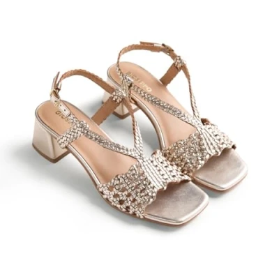 STYLISH AND MODERN DESIGN | Hand-braided leather sandals with a metallic finish that adds a sophisticated touch to any ensemble. 4.5 cm block heel for a sleek, comfortable style. AUTHENTICITY IN EVERY PIECE | Natural variations of the leather are reflective of the artisan process, ensuring that each pair of sandals is unique and special. ALL DAY COMFORT | Features cushioned sole for added comfort. Ergonomic design with flexible rubber sole ensures a safe and comfortable step. STYLE AND VERSATILITY | Adjustable ankle strap for a total fit. Excellent sandals for any event, combining comfort, style and functionality. SPANISH DESIGN | Gioseppo presents a footwear proposal created in Spain, noting for its careful design and materials designed for any occasion.