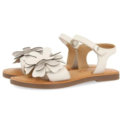 Padded leather sandals with floral embellishments on the cut Flexible floor The insole is padded Sustainably tanned leather footbed