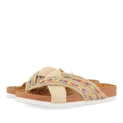 Stylish Slide Sandal: Showcase your fashion sense with these trendy slide sandals from Gioseppo. The Inzago model is a perfect blend of style and comfort Versatile Footwear: These flip-flops are suitable for various occasions, including weddings, parties, and casual outings. The multicolor design adds a touch of elegance to your look Premium Materials: Experience the luxurious feel of cork and jute materials, which are not only comfortable but also lightweight and water-resistant. The slide sandal features a sturdy ratan and polyurethane sole for long-lasting durability Perfect Fit: These women's flip-flops are available in a wide range of sizes, from UK size 0.5 to larger sizes. The medium width ensures a comfortable fit for most foot types Easy to Wear: The slip-on closure type makes it easy to wear and remove these sandals. The open-toe design and adjustable toe strap provide a secure fit and added comfort Ideal for Summer: These sandals are perfect for summer activities, thanks to their lightweight and breathable design. The slide sandal's lifestyle is casual, making it a great choice for everyday wear