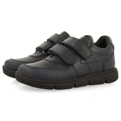Navy blue school sneakers in sustainably tanned leather with adjustable fasteners Breathable lining, flexible sole, and highly cushioned and breathable leather insole Very lightweight, non-slip and flexible outsole Breathable, absorbent, quick-drying lining and insole