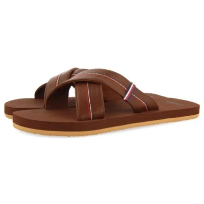 Brown sandals with colorful accents Men's Crossover Sandals They are lined in super soft polyester The floor is lightweight EVA