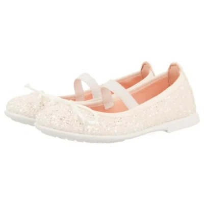 white ballerinas with glitter and elastic strap Heavily padded insole flexible floor