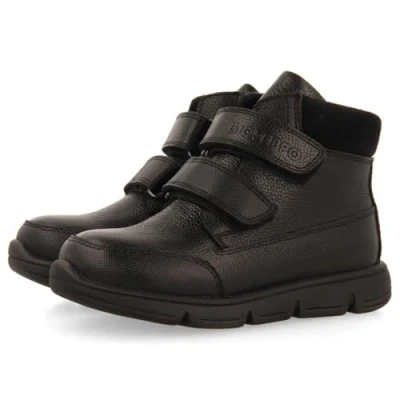 Black collegiate booties in sustainably tanned leather Breathable lining, flexible sole, and highly cushioned and breathable leather insole Very lightweight, non-slip and flexible outsole Breathable, absorbent, quick-drying lining and insole