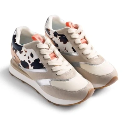 SNEAKERS | Cow print sneakers with glitter, metallic details and internal wedge for a modern twist CUSHIONED INSOLE | Cushioned footbed for all-day comfort STYLE & COMFORT | 2cm wedge and 3cm platform for an excellent balance between style and support FLEXIBLE SOLE | Rubber outsole and lightweight EVA midsole provides added flexibility and durability SPANISH DESIGN | Gioseppo presents a footwear proposal created in Spain, noting for its careful design and materials designed for any occasion.