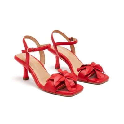 AmazonWomen's leather sandals with braided and thin heel padded sole and adjustable ankle closure Heel height: 4 cm