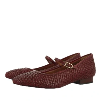 Burgundy Mary Jane style ballerinas with artisanal braiding Highly cushioned sustainably tanned leather footbed Leather lining and flexible floor Heel height 1.5 cm