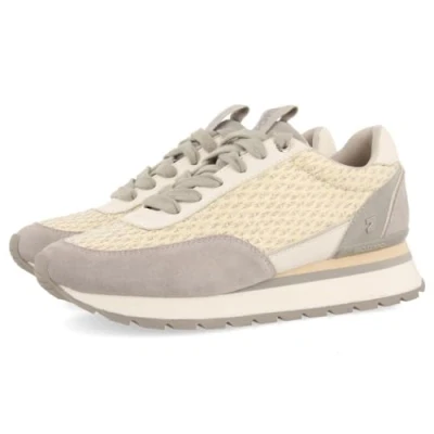 Basic cut sneakers with raffia-style braid cut in beige tone with grey and silver accents Removable anatomical footbed Very light and comfortable sole Global Recycled Standard (GRS) Certified Warranty
