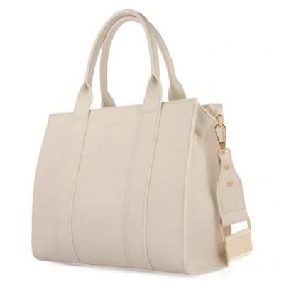 Mini leather shoulder bag with beige detail Features double handles, one short and one adjustable length that you can remove and put on Zip closure Lining is made of 100% polyester