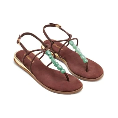 Flat Greek style leather sandals with stones embellishment and buckle closure Features leather insole