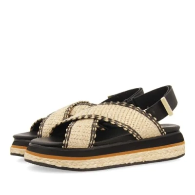 Combined raffia strappy sport sandals Platform combines two-tone EVA and raffia lined Adjustable closure for a better hold Cushioned insole to ensure maximum comfort