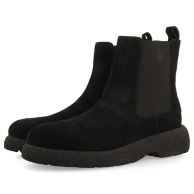 Black chelsea style ankle boots in split leather They have a very padded footbed, natural fibre plant and rubber sole The lining and insole have been tanned following a more sustainable process under Leather Working Group (LWG) standards Leather
