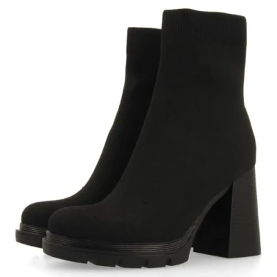 Black sock ankle boots with heel and track sole Features breathable leather sole with padding The floor is made of rubber maximum comfort