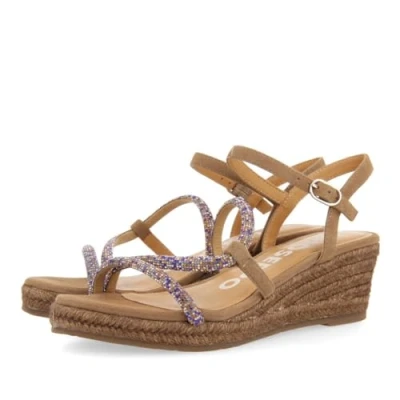 Taupe Sandals with Strap Multi Color Micro Crystals 6cm Jute Wedge Flexible base Highly cushioned latex leather footbed Leather lining