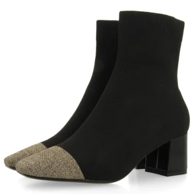 Black sock style booties with gold toe and heel They have a very padded footbed, natural fibre plant and rubber sole The floor is made of rubber maximum comfort