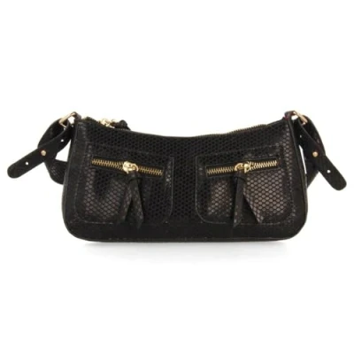 Black Snake Texture Baguette Shoulder Bag with Pockets outside pockets Zipper closure Measures Length 27 cm Width 5 cm Height 12 cm Centimeters