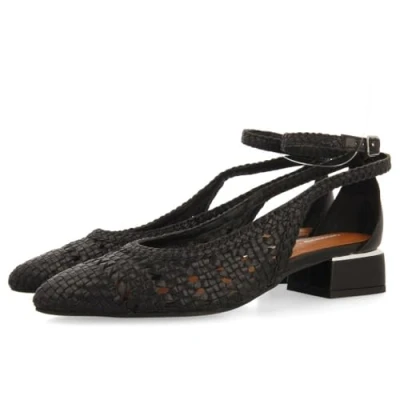 Black ballet flats with braided craftsmanship, metallic details, adjustable closures and low heel Heavily cushioned footbed and flexible floor Sustainably tanned leather lining and insole Heel height 3 cm