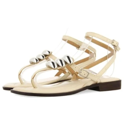 Leather Flat Jewel Embellishment Sandals