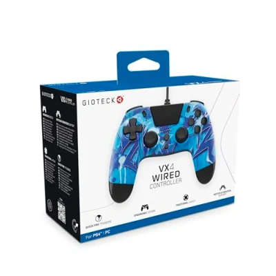 Gioteck VX4 Wired Controller for PlayStation 4 (PS4) Blue Lightning