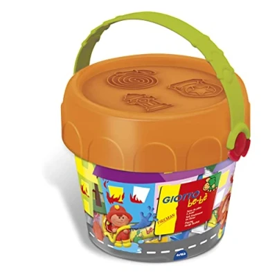 Learn & Play Playful bucket with imprinting lid, strong, resistant, safe and certified Contains 12 modelling dough sausages, 3 firemen themed moulds, 1 rolling pin, 1 double-tip cutter, 1 pair of scissors, 1 rolling cutter and 1 placemat play scenery 60x40cm Made in Italy, Manufacturer: GIOTTO be-bè