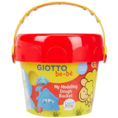 Learn & Play Playful bucket with imprinting lid, strong, resistant, safe and certified Contains 5 modelling dough pots, 1 rolling pin, 1 cutter, 3 plodders and 1 mould Made in Italy, Manufacturer: GIOTTO be-bè