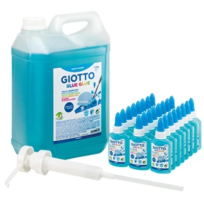 A glue with a characteristic blue color that allows the little ones to see where it is laid out Transparent when dry Ideal for paper and cardboard Slow drying and repositionable Can 5 kg + 24 vials of 40 g, Manufacturer: FILA