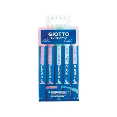 GIOTTO Turbo Pro Felt Tip Fibre Pens, Dual Tip, Assorted Candy Colours, 5 Pieces, For Children, Parties and Schools