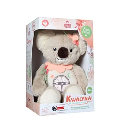 Almost 2 hours of stories Evolutionary Stories Created and developed in collaboration with Whisperies, the largest library of animated and audible stories for children, Kwalyna is an adorable plush koala storyteller. Designed and developed in collaboration with Whisperies, the largest library of animated and audible stories for children, Kwalyna, the adorable cuddly koala, is a stuffed animal that tells stories. With 15 adventure stories and 14 sweet bedtime stories, it's almost 2 hours of wonderful stories for kids. Kwalyna offers 3 listening levels: "Initiative" for children from 0 to 3 years, "Discover" for children in kindergarten and "expert" for children from the big school. Everyone will be able to experience great adventures and let their imagination run wild while embracing Kwalyna. Gift idea for a birthday or the birth of a child, Manufacturer: GIPSY TOYS